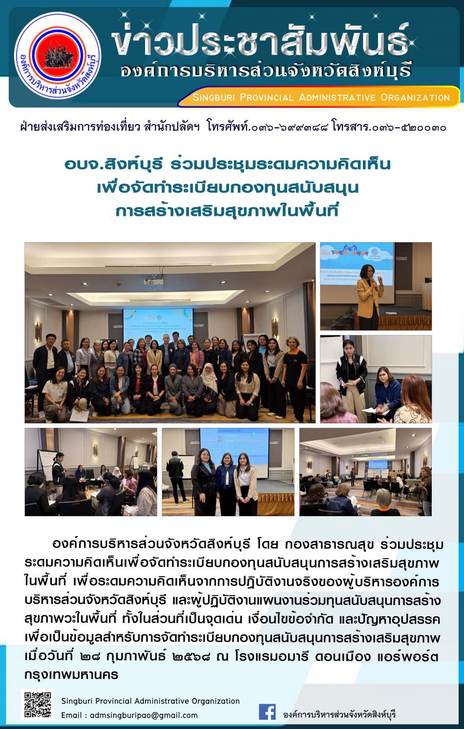 อบจ.สิงห์บุรี ร่วมประชุมระดมความคิดเห็นเพื่อจัดการระเบียบกองทุนสนับสนุนการสร้างเสริมสุขภาพในพื้นที่ [28 กุมภาพันธ์ 2568]