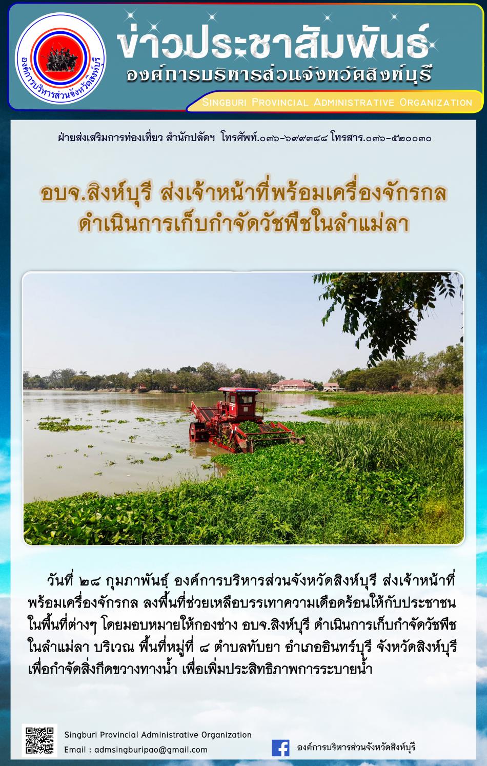 อบจ.สิงห์บุรี ส่งเจ้าหน้าที่พร้อมเครื่องจักรกล เก็บกำจัดวัชพืช บริเวณลำแม่ลา [28 กุมภาพันธ์ 2568]