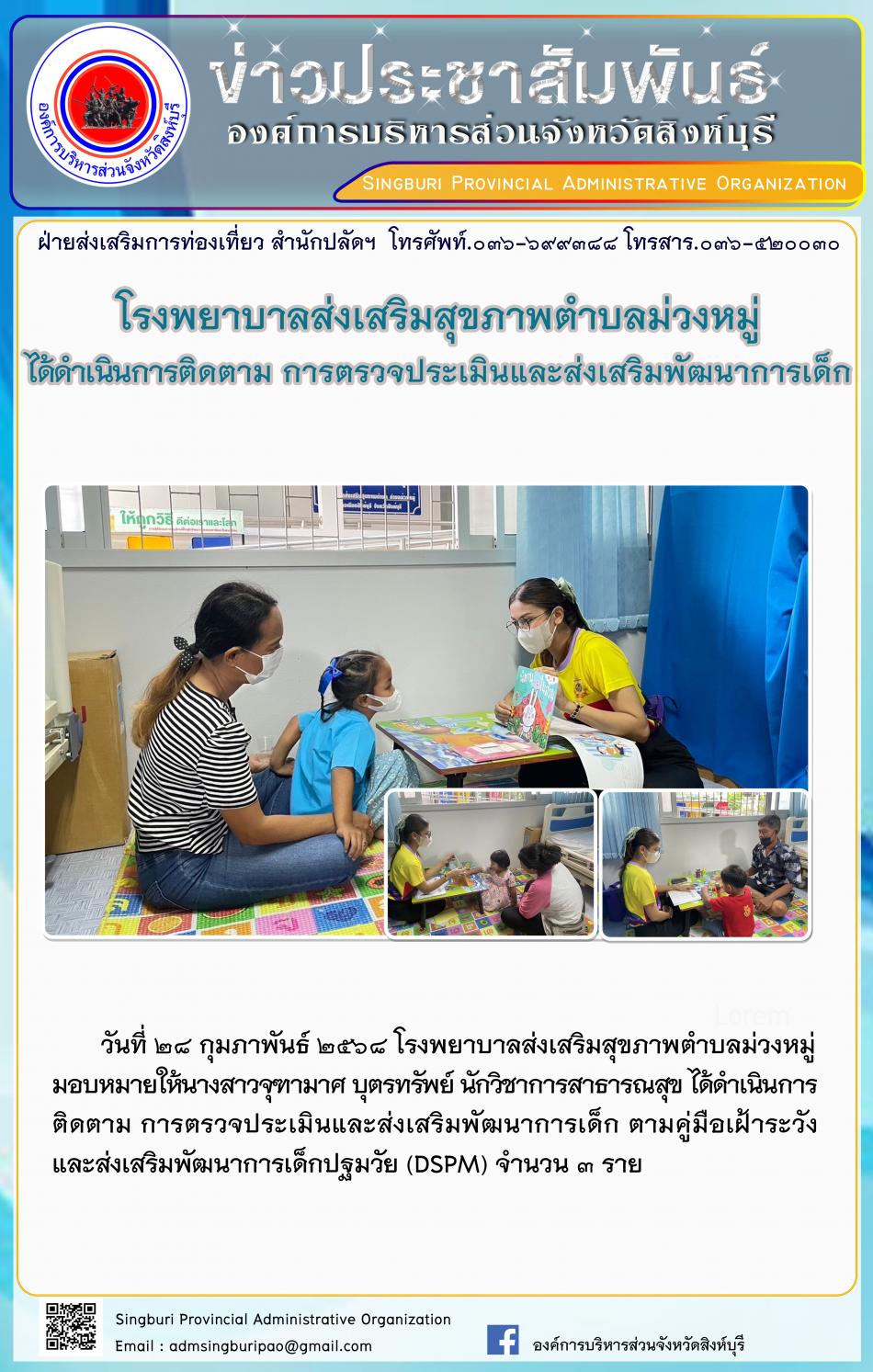 โรงพยาบาลส่งเสริมสุขภาพตำบลม่วงหมู่ ได้ดำเนินการติดตาม การตรวจประเมินและส่งเสริมพัฒนาการเด็ก [28 กุมภาพันธ์ 2568]