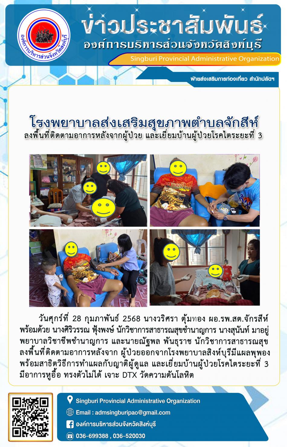 โรงพยาบาลส่งเสริมสุขภาพตำบลจักรสีห์ ลงพื้นที่ติดตามอาการจากผู้ป่วย และเยี่ยมบ้านผู้ป่วยโรคไตระยะที่ 3 [28 กุมภาพันธ์ 2568]