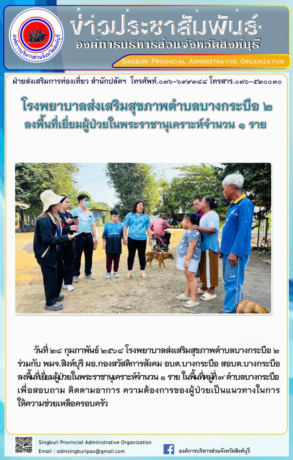 โรงพยาบาลส่งเสริมสุขภาพตำบลบางกระบือ 2 ลงพื้นที่เยี่ยมผู้ป่วยในพระราชานุเคราะห์จำนวน 1 ราย [28 กุมภาพันธ์ 2568]