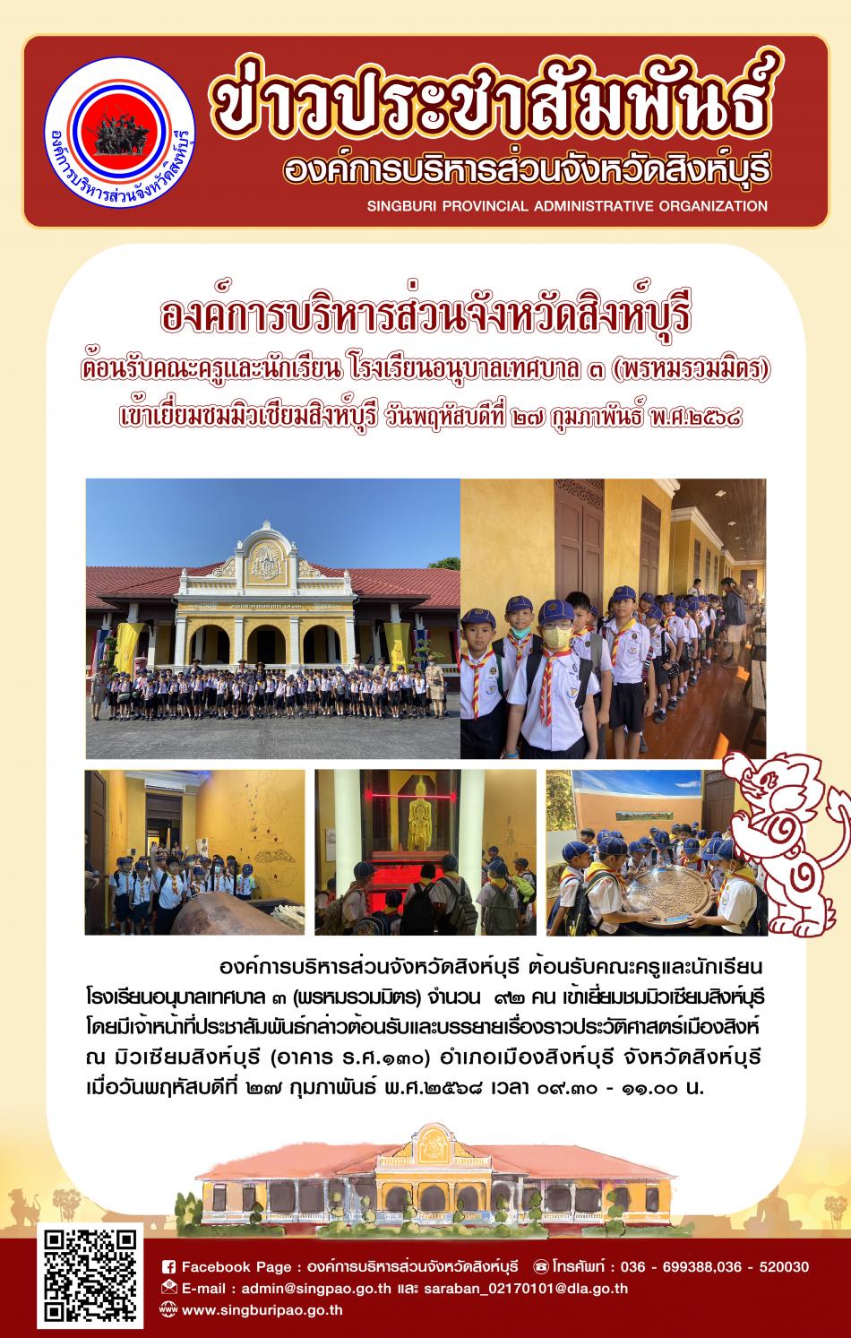 องค์การบริหารส่วนจังหวัดสิงห์บุรี ต้อนรับคณะครูและนักเรียน โรงเรียนอนุบาลเทศบาล 3(พรหมรวมมิตร) เข้าชมมิวเซียมสิงห์บุรี [28 กุมภาพันธ์ 2568]