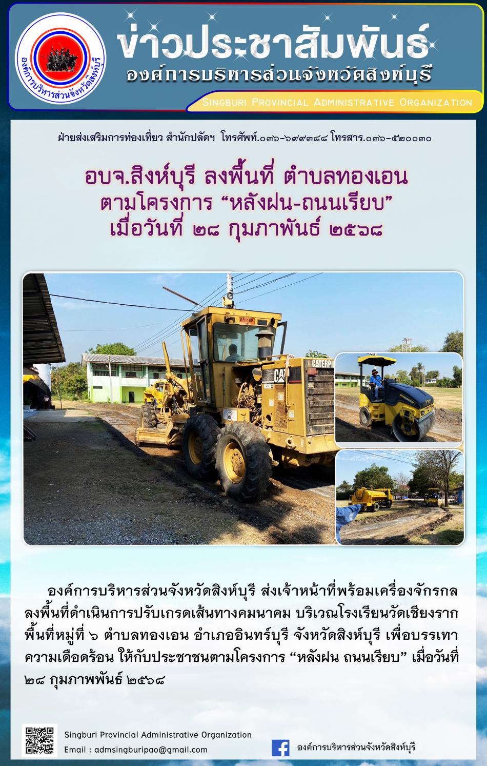 อบจ.สิงห์บุรี ลงพื้นที่ ตำบลทองเอน ตามโครงการ "หลังฝน - ถนนเรียบ" [28 กุมภาพันธ์ 2568]