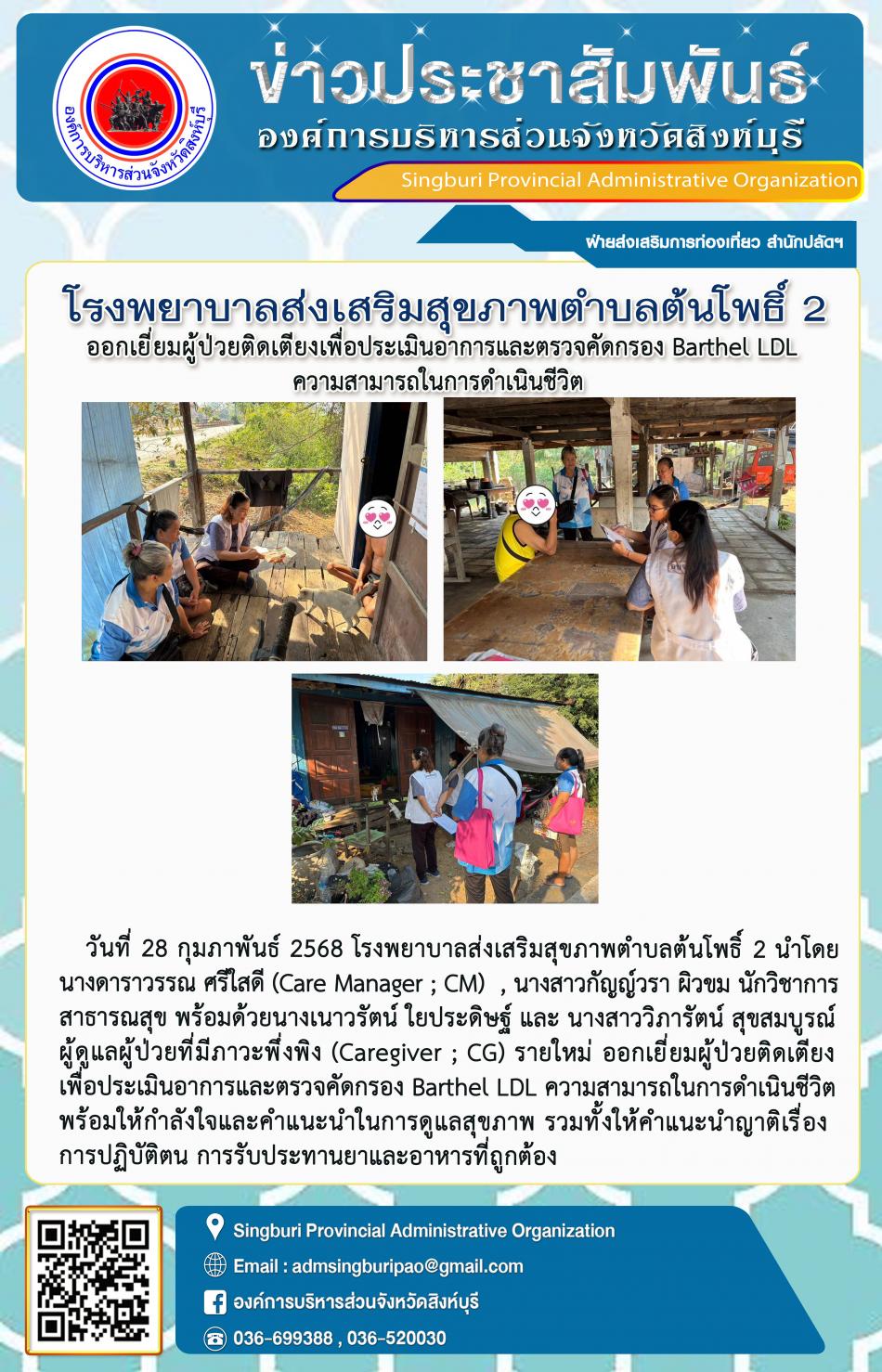 โรงพยาบาลส่งเสริมสุขภาพตำบลต้นโพธิ์ 2 ออกเยี่ยมผู้ป่วยติดเตียงเพื่อประเมิน Barthel LDL ความสามารถในการดำเนินชีวิต [28 กุมภาพันธ์ 2568]