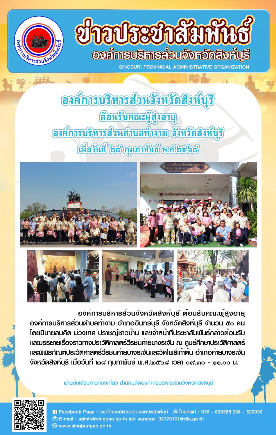 องค์การบริหารส่วนจังหวัดสิงห์บุรี ต้อนรับคณะผู้สูงอายุองค์การบริหารส่วนตำบลท่างาม จังหวัดสิงห์บุรี [28 กุมภาพันธ์ 2568]