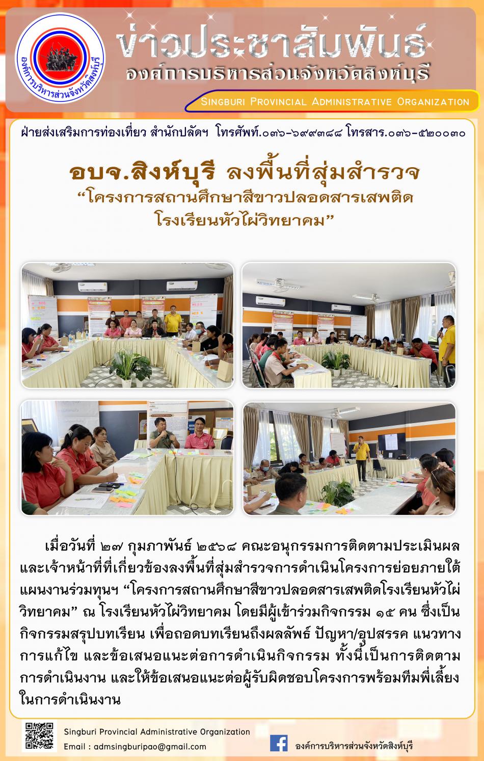 อบจ.สิงห์บุรี ลงพื้นที่สุ่มตรวจ "โครงการสถานศึกษาสีขาวปลอดสารเสพติด โรงเรียนหัวไผ่วิทยาคม" [27 กุมภาพันธ์ 2568]