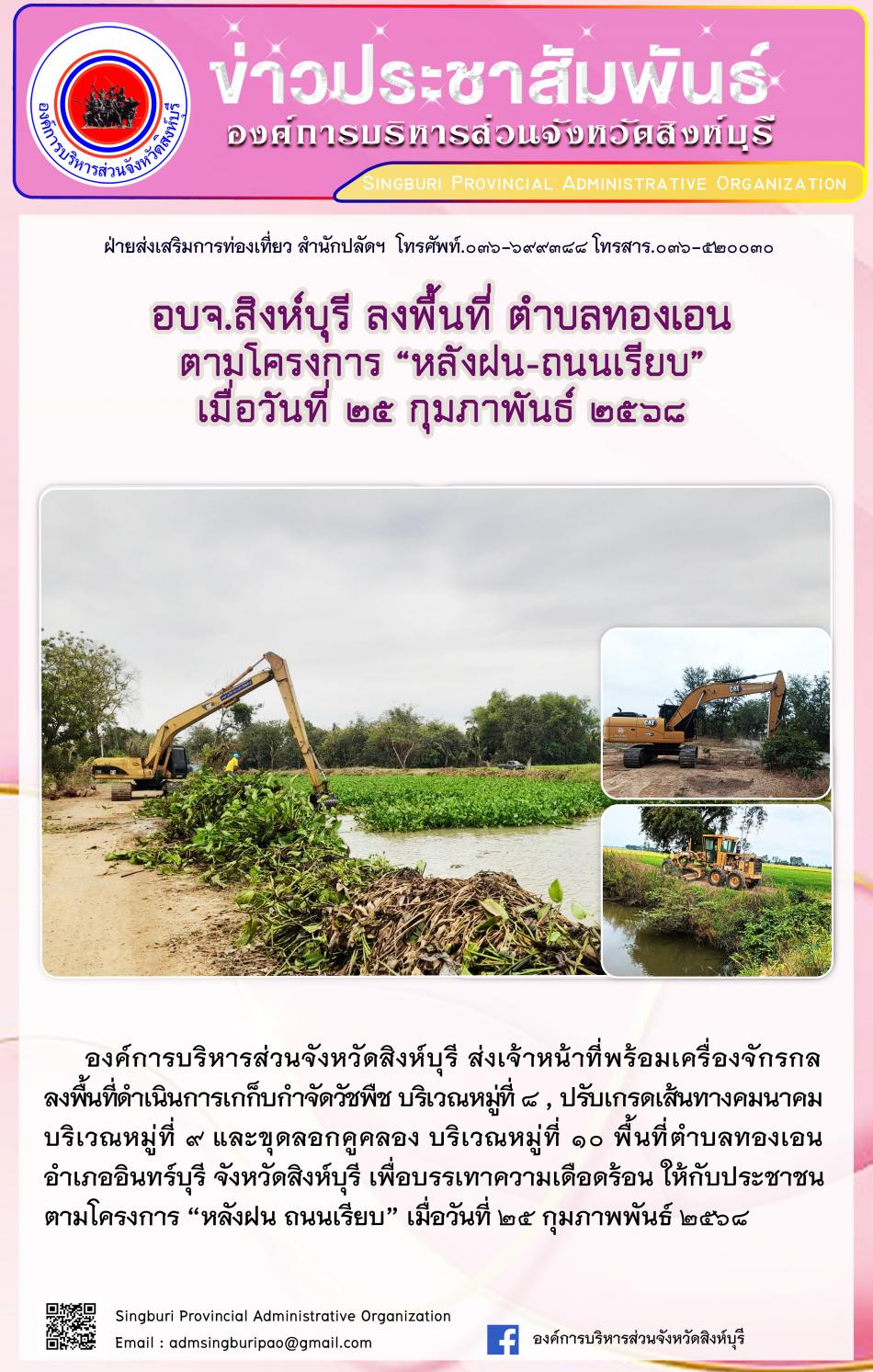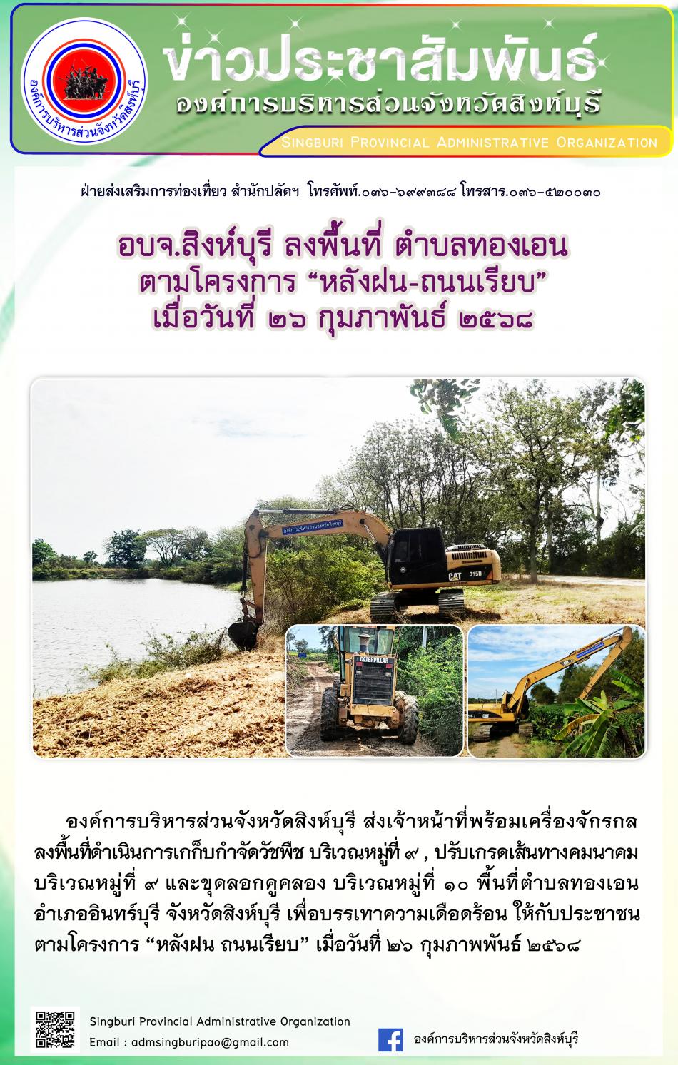อบจ.สิงห์บุรี ลงพื้นที่ ตำบลทองเอน ตามโครงการ "หลังฝน - ถนนเรียบ" [26 กุมภาพันธ์ 2568]