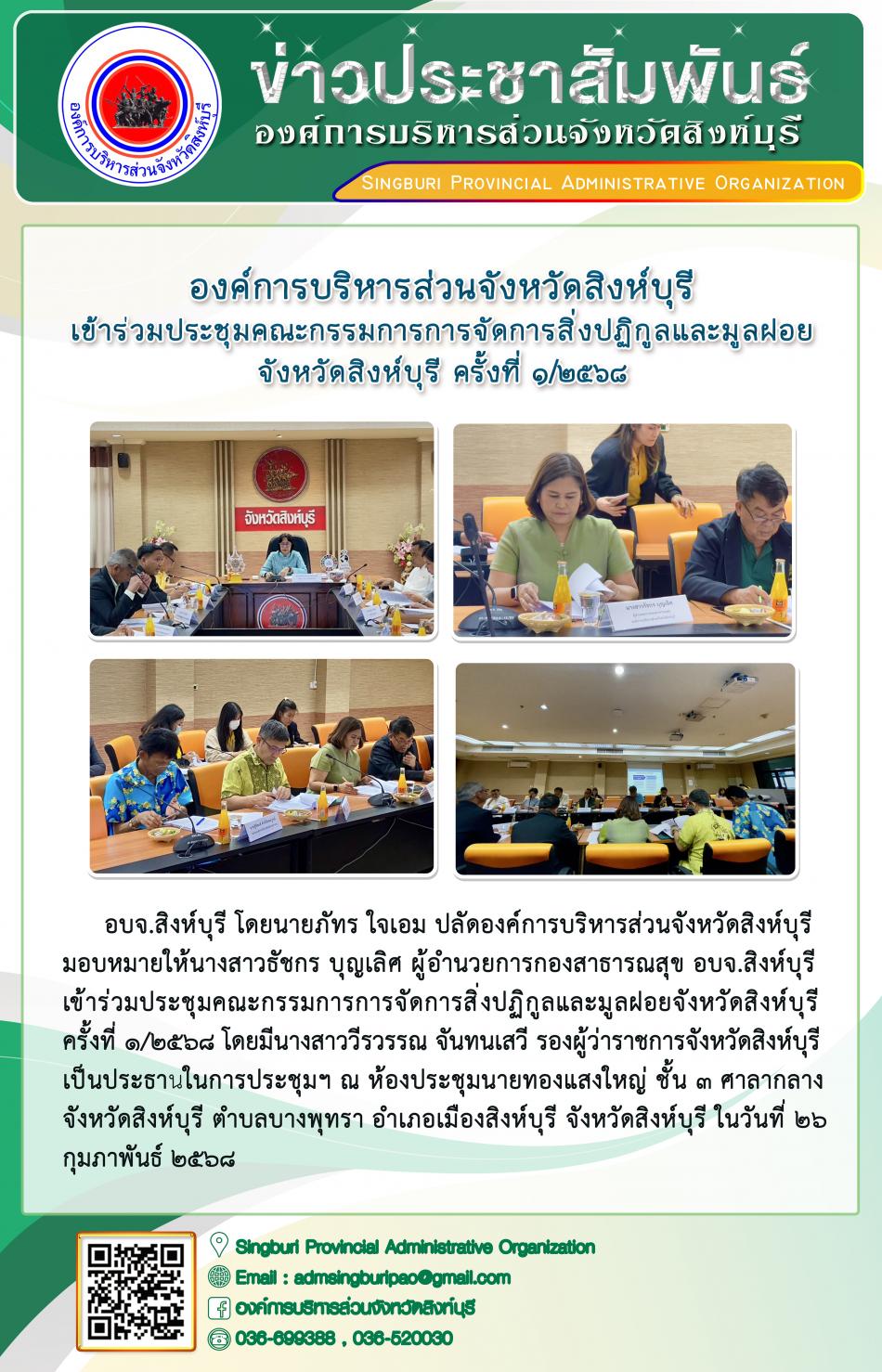 องค์การบริหารส่วนจังหวัดสิงห์บุรี เข้าร่วมประชุมคณะกรรมการจัดการสิ่งปฏิกูล จังหวัดสิงห์บุรี ครั้งที่ 1/2568 [26 กุมภาพันธ์ 2568]