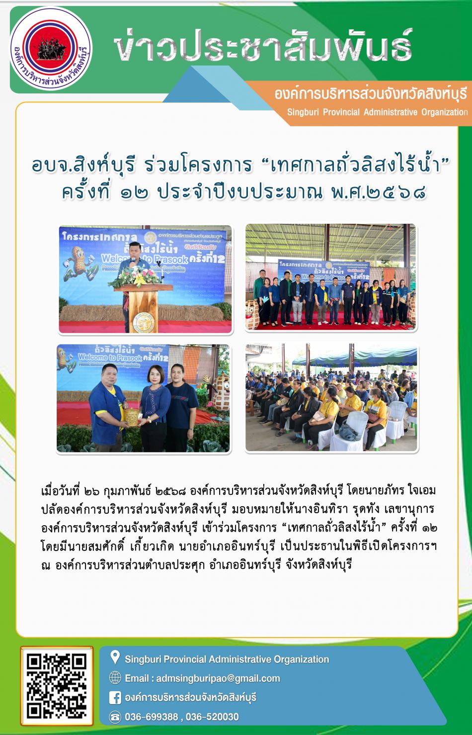 อบจ.สิงห์บุรี ร่วมโครงการ "เทศกาลถั่วลิสงไร้น้ำ" ครั้งที่ 12 ประจำปีงบประมาณ พ.ศ.2568 [26 กุมภาพันธ์ 2568]