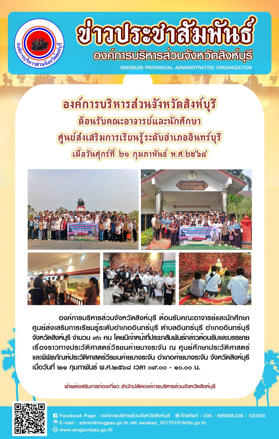 องค์การบริหารส่วนจังหวัดสิงห์บุรี ต้อนรับคณะอาจารย์และนักศึกษาศูนย์ส่งเสริมการเรียนรู้ระดับอำเภออินทร์บุรี [21 กุมภาพันธ์ 2568]