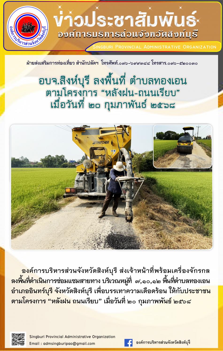อบจ.สิงห์บุรี ลงพื้นที่ ตำบลทองเอน ตามโครงการ "หลังฝน - ถนนเรียบ" [20 กุมภาพันธ์ 2568]