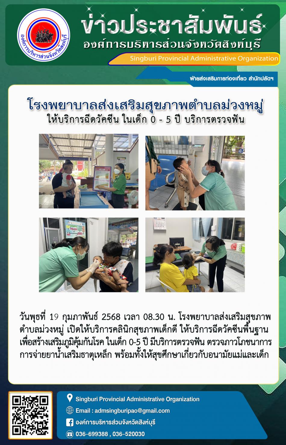 โรงพยาบาลส่งเสริมสุขภาพตำบลม่วงหมู่ ให้บริการฉีดวัคซีน ในเด็ก 0 - 5 ปี บริการตรวจฟัน [19 กุมภาพันธ์ 2568]