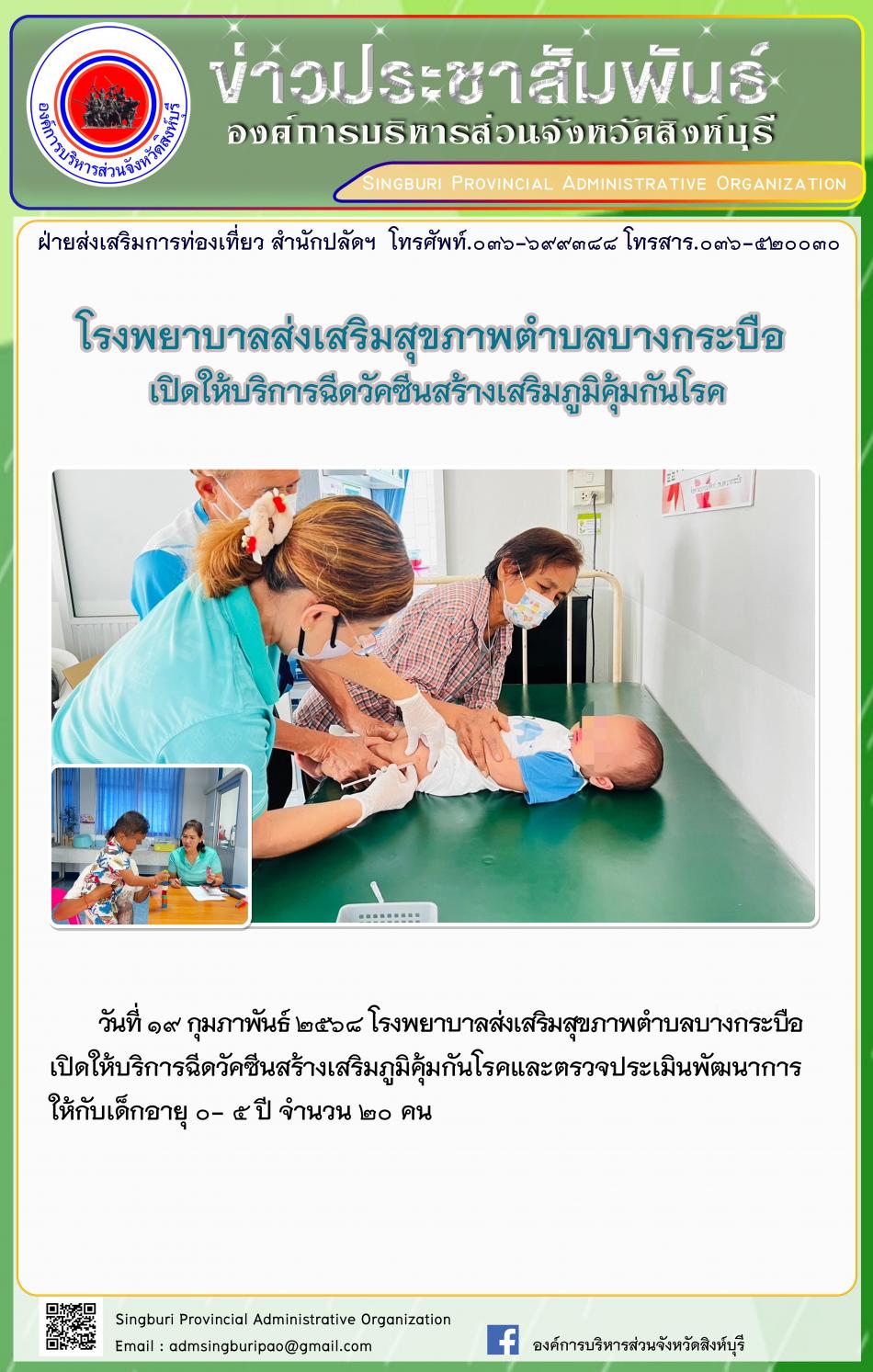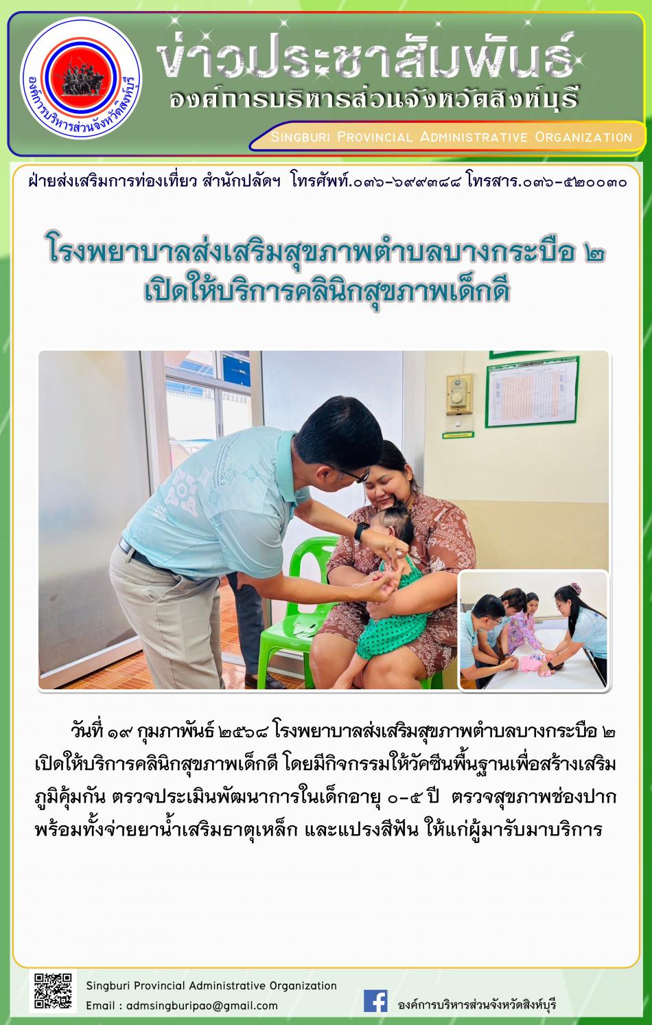โรงพยาบาลส่งเสริมสุขภาพตำบลบางกระบือ 2 เปิดให้บริการคลินิกสุขภาพเด็กดี [19 กุมภาพันธ์ 2568]