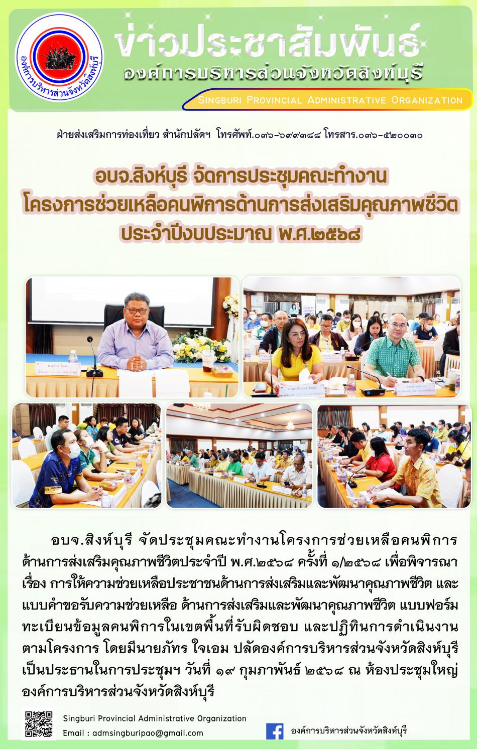 อบจ.สิงห์บุรี จัดการประชุมคณะทำงานโครงการช่วยเหลือคนพิการด้นการส่งเสริมคุณภาพชีวิต ประจำปีงบประมาณ พ.ศ.2568 [19 กุมภาพันธ์ 2568]