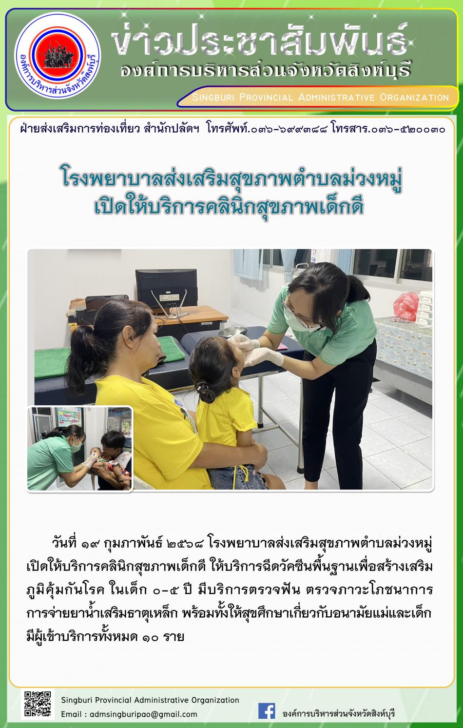 โรงพยาบาลส่งเสริมสุขภาพตำบลม่วงหมู่ เปิดให้บริการคลินิกสุขภาพเด็กดี [19 กุมภาพันธ์ 2568]