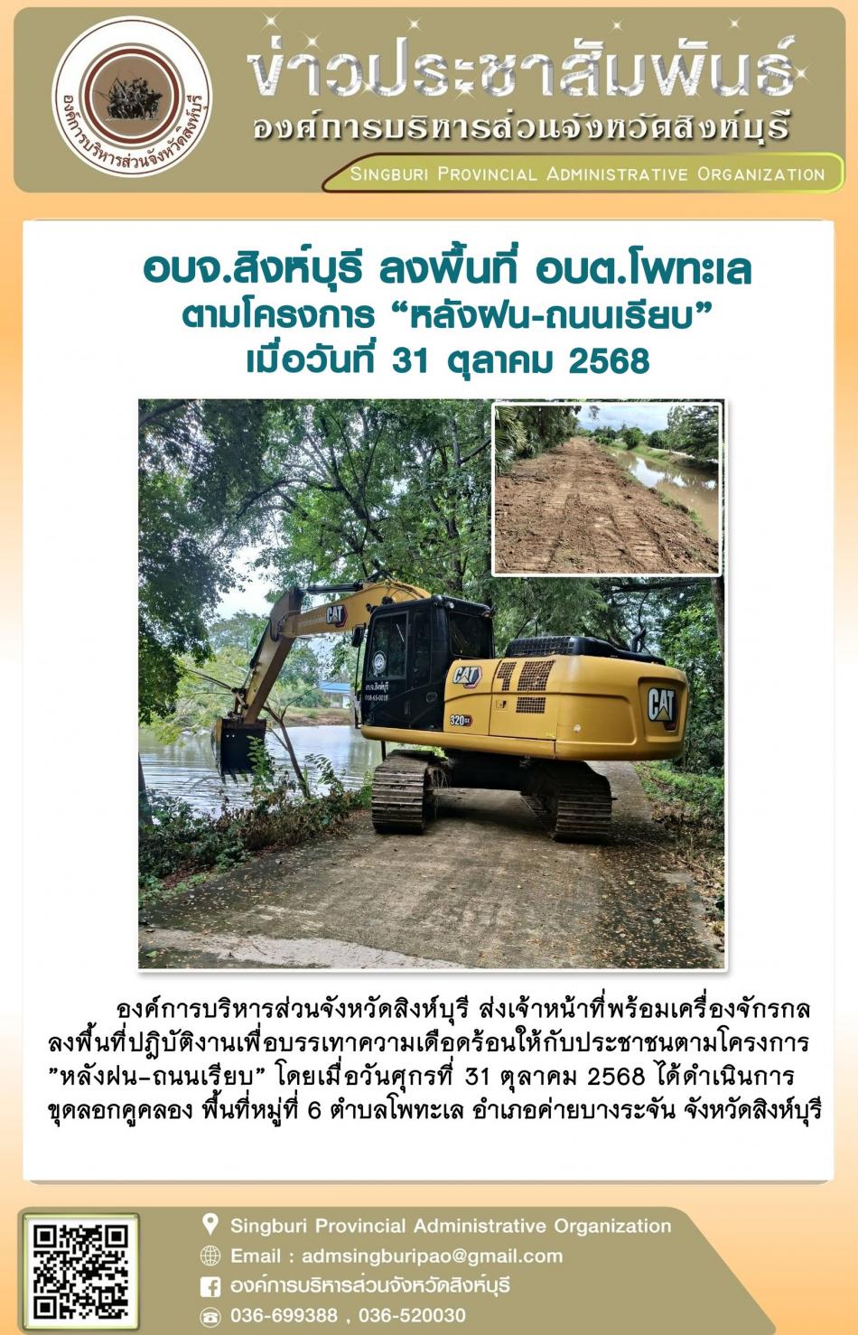 อบจ.สิงห์บุรี ลงพื้นที่ อบต.โพทะเล ตามโครงการ “ หลัง ฝน- ถนนเรียบ” [31 ตุลาคม 2568]