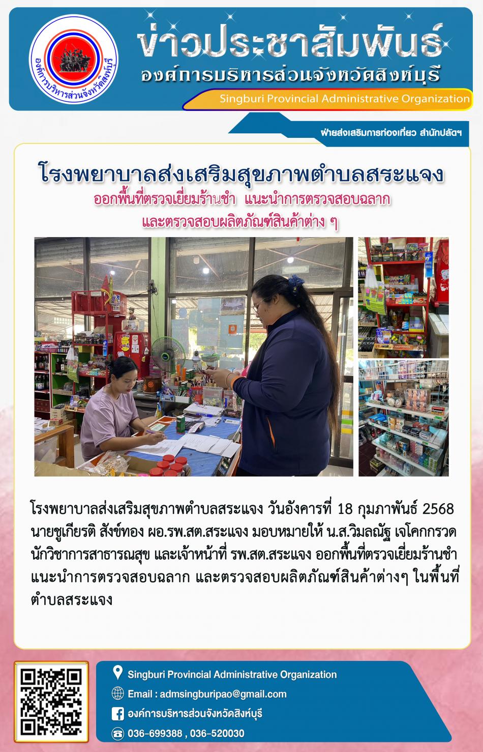 โรงพยาบาลส่งเสริมสุขภาพตำบลสระแจง ออกพื้นที่ตรวจเยี่ยมร้านชำ แนะนำการตรวจสอบฉลากผลิตภัณฑ์สินค้าต่างๆ [18 กุมภาพันธ์ 2568]