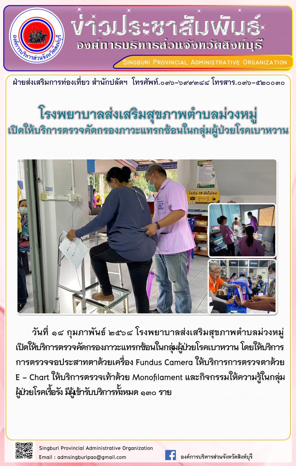 โรงพยาบาลส่งเสริมสุขภาพตำบลม่วงหมู่ เปิดให้บริการตรวจคัดกรองภาวะแทรกซ้อนในกลุ่มผู้ป่วยโรคเบาหวาน [18 กุมภาพันธ์ 2568]