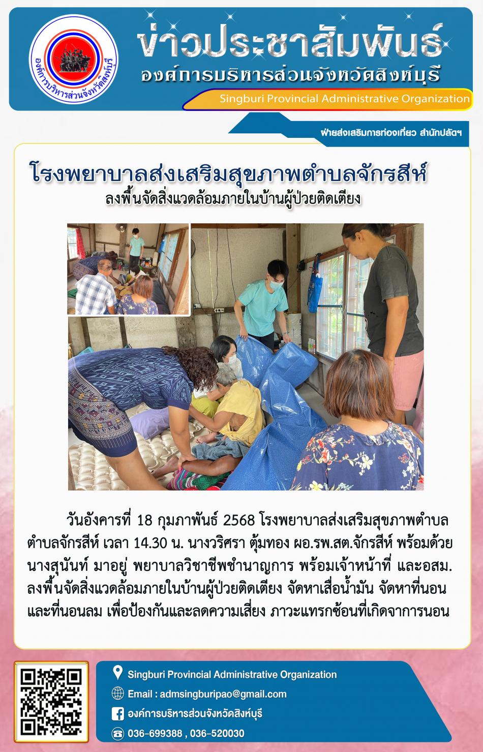 โรงพยาบาลส่งเสริมสุขภาพตำบลจักรสีห์ ลงพื้นที่จัดสิ่งแวดล้อมภายในบ้านผู้ป่วยติดเตียง [18 กุมภาพันธ์ 2568]
