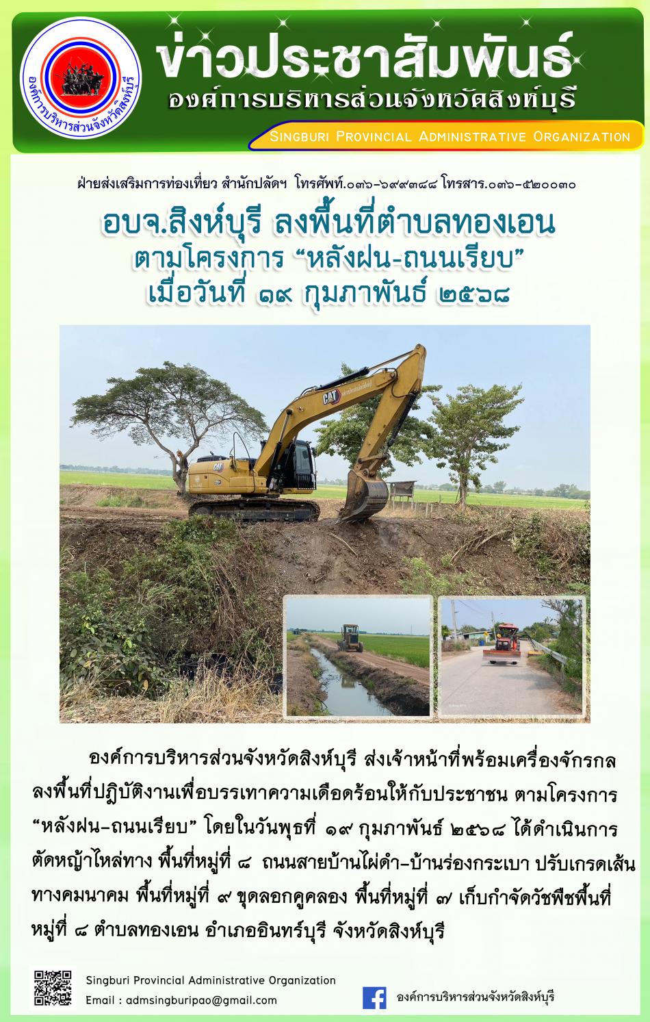 อบจ.สิงห์บุรี ลงพื้นที่ ตำบลทองเอน ตามโครงการ "หลังฝน - ถนนเรียบ" [19 กุมภาพันธ์ 2568]