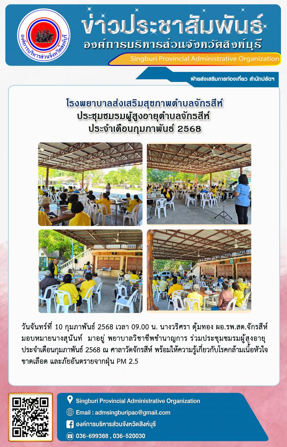 โรงพยาบาลส่งเสริมสุขภาพตำบลจักรสีห์ ประชุมชมรมผู้สูงอายุตำบลจักรสีห์ ประจำเดือนกุมภาพันธ์ 2568 [10 กุมภาพันธ์ 2568]