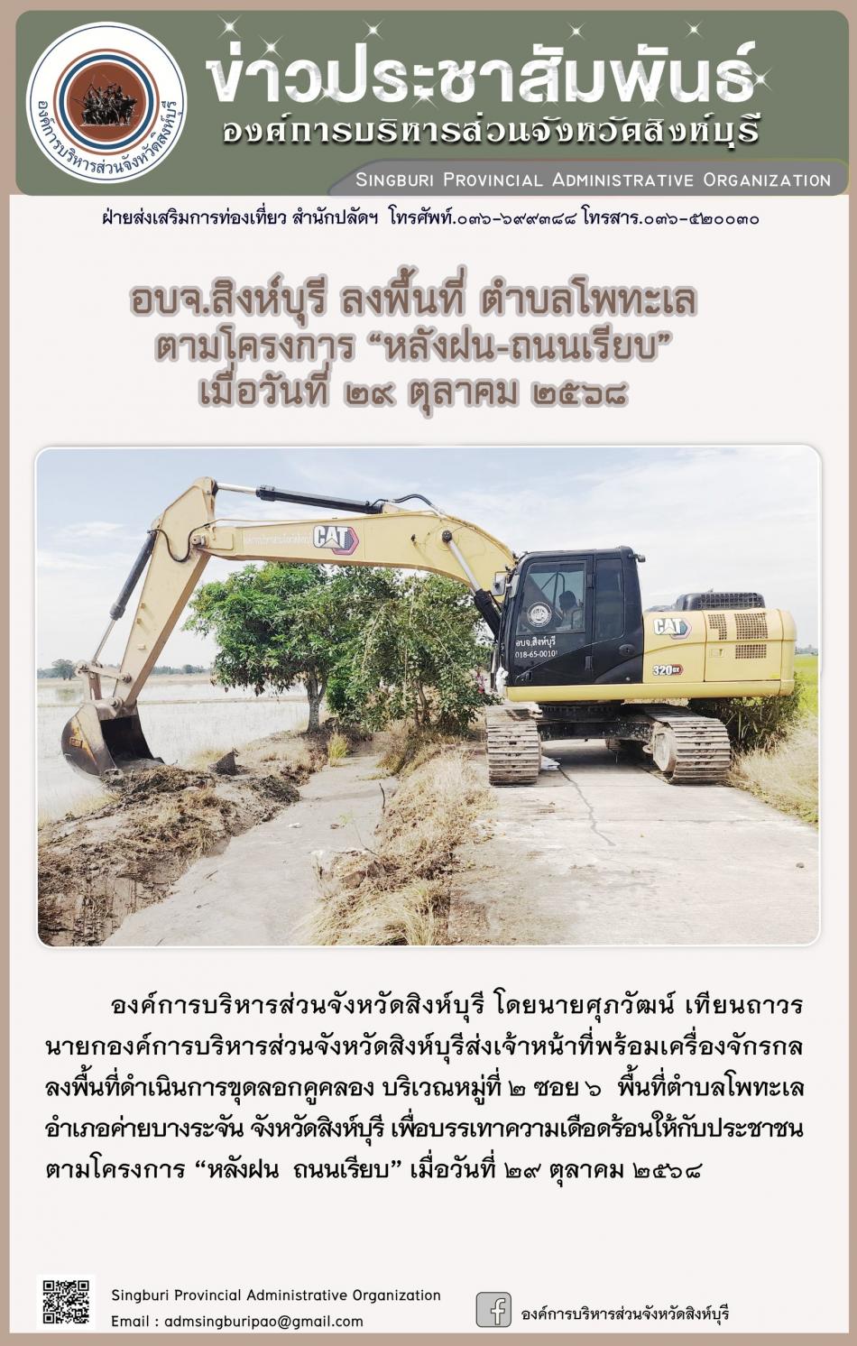 อบจ.สิงห์บุรี ลงพื้นที่ ตำบลโพทะเล ตามโครงการ “ หลัง ฝน- ถนนเรียบ” [29 ตุลาคม 2568]