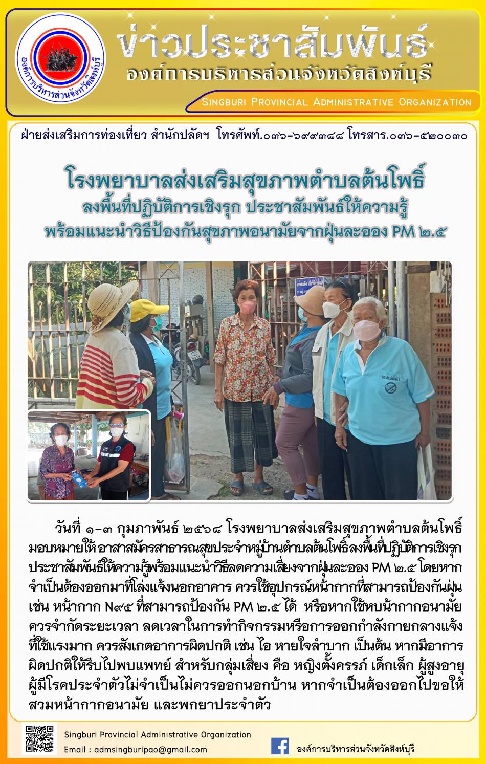 โรงพยาบาลส่งเสริมสุขภาพตำบลต้นโพธิ์ ลงพื้นที่ให้คำแนะนำวิธีป้องกันสุขภาพอนามัยจากฝุ่นละออง PM 2.5 [30 มกราคม 2568]