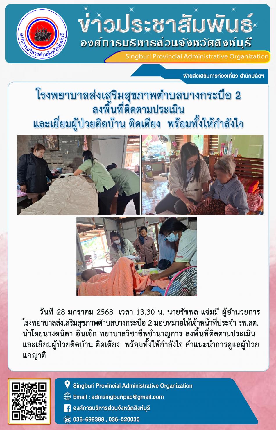 โรงพยาบาลส่งเสริมสุขภาพตำบลบางกระบือ 2 ลงพื้นที่ติดตามประเมินและเยี่ยมผู้ป่วยติดบ้าน ติดเตียง พร้อมทั้งให้กำลังใจ [28 มกราคม 2568]