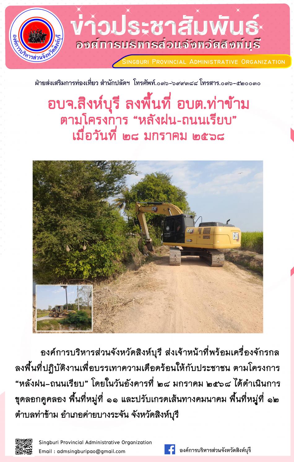อบจ.สิงห์บุรี ลงพื้นที่ อบต.ท่าข้าม ตามโครงการ "หลังฝน - ถนนเรียบ" [28 มกราคม 2568]