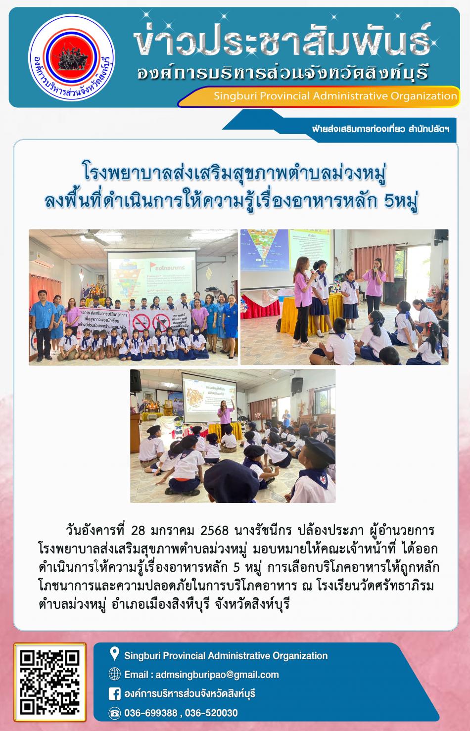โรงพยาบาลส่งเสริมสุขภาพตำบลม่วงหมู่ ลงพื้นที่ดำเนินการให้ความรู้เรื่องอาหารหลัก 5 หมู่ [28 มกราคม 2568]