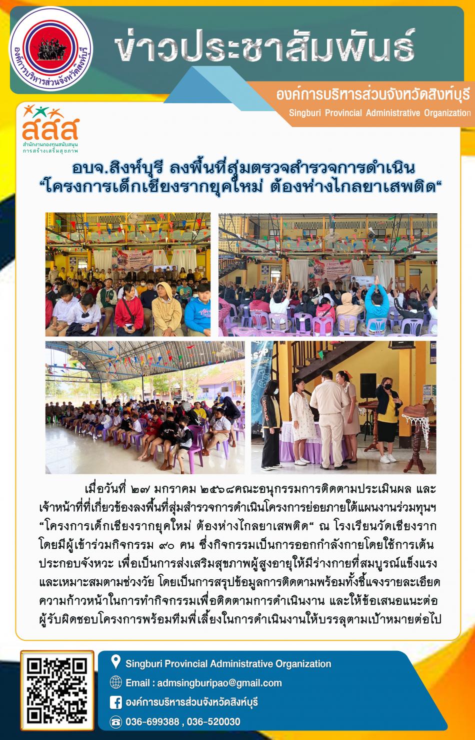 อบจ.สิงห์บุรี ลงพื้นที่สุ่มตรวจสำรวจการดำเนิน "โครงการเด็กเชียงรากยุคใหม่ ต้องห่างไกลยาเสพติด" [27 มกราคม 2568]