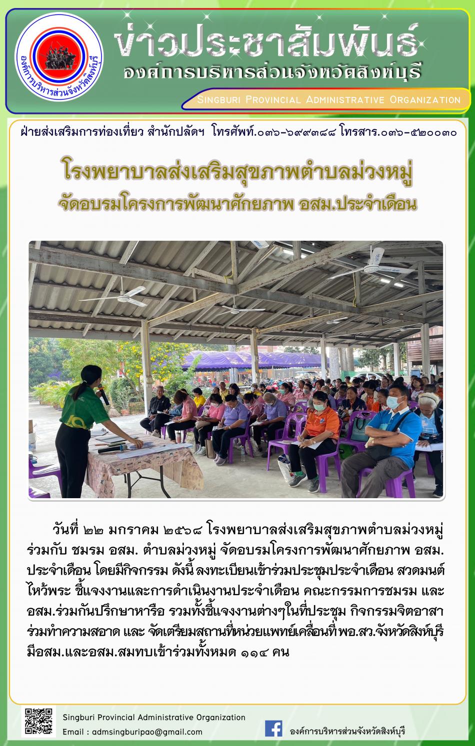 โรงพยาบาลส่งเสริมสุขภาพตำบลม่วงหมู่จัดอบรมโครงการพัฒนาศักยภาพ อสม.ประจำเดือน [22 มกราคม 2568]