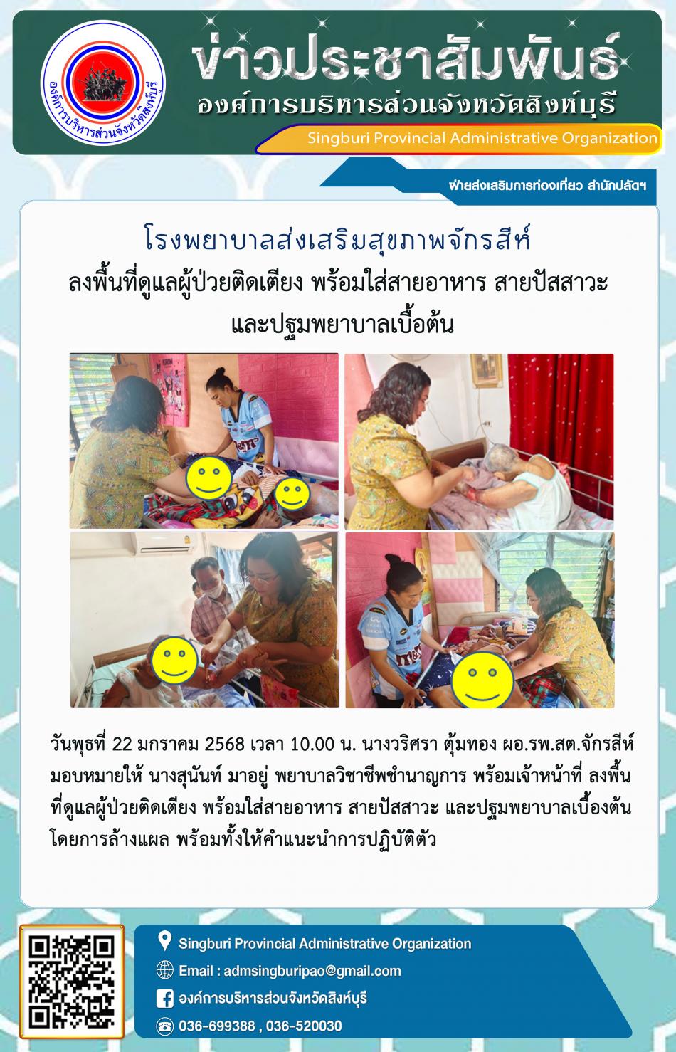 โรงพยาบาลส่งเสริมสุขภาพตำบลจักรสีห์ ลงพื้นที่ดูแลผู้ป่วยติดเตียง พร้อมใส่สายอาหาร สายปัสสาวะ และปฐมพยาบาลเบื้องต้น [22 มกราคม 2568]