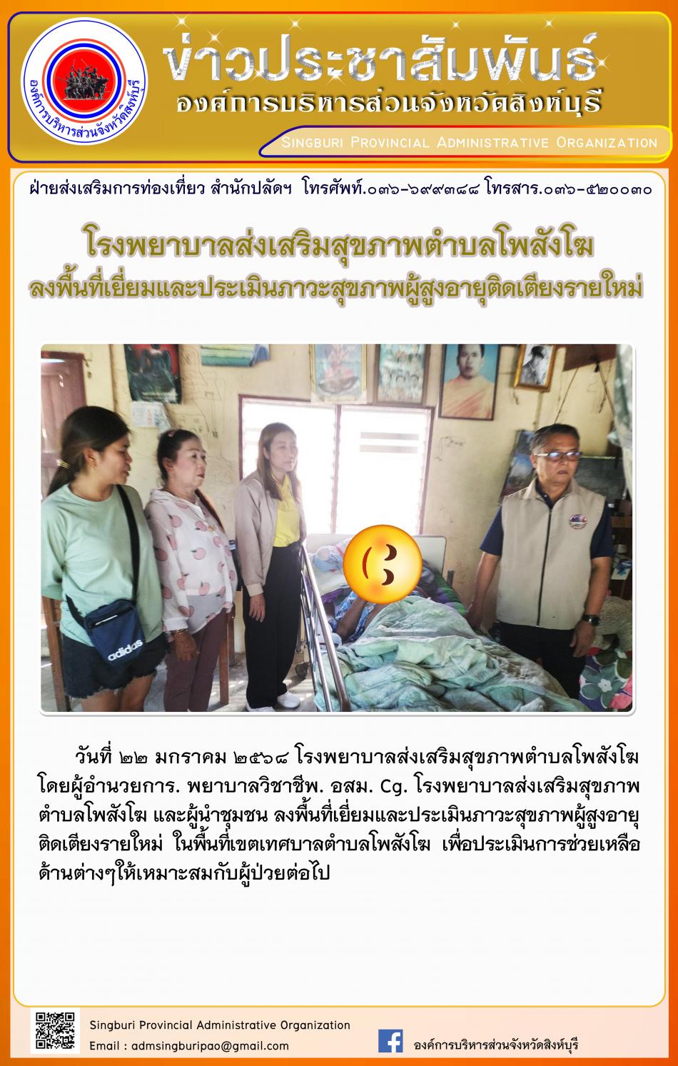 โรงพยาบาลส่งเสริมสุขภาพตำบลโพสังโฆ ลงพื้นที่เยี่ยมและประเมินภาวะสุขภาพผู้สูงอายุติดเตียงรายใหม่ [22 มกราคม 2568]