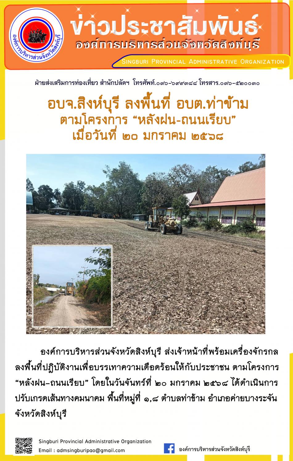 อบจ.สิงห์บุรี ลงพื้นที่ อบต.ท่าข้าม ตามโครงการ "หลังฝน - ถนนเรียบ" [20 มกราคม 2568]