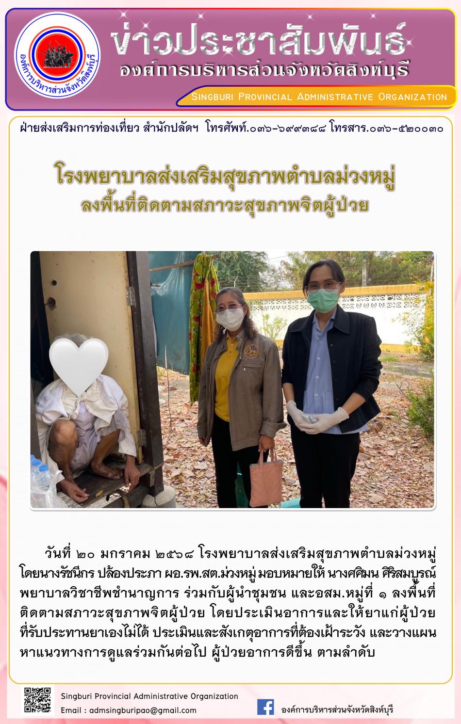 โรงพยาบาลส่งเสริมสุขภาพตำบลม่วงหมู่ ลงพื้นที่ติดตามสภาวะสุขภาพจิตผู้ป่วย [20 มกราคม 2568]