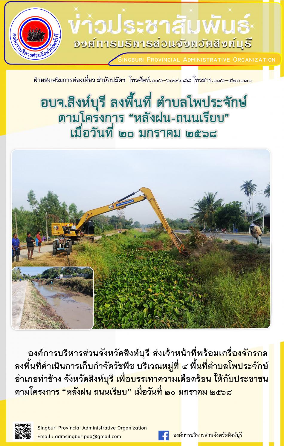 อบจ.สิงห์บุรี ลงพื้นที่ ตำบลโพประจักษ์ ตามโครงการ "หลังฝน - ถนนเรียบ" [20 มกราคม 2568]