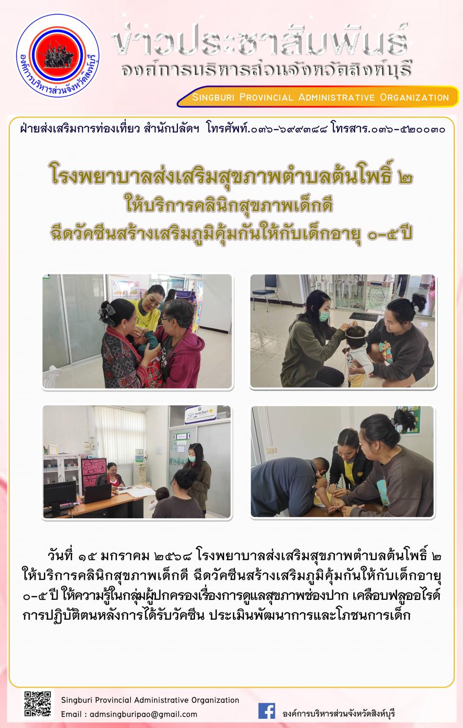 โรงพยาบาลส่งเสริมสุขภาพตำบลต้นโพธิ์ 2 ให้บริการคลินิกสุขภาพเด็กดีฉีดวัคซีนสร้างเสริมภูมิคุ้มกันให้กับเด็กอายุ 0-5 ปี [15 มกราคม 2568]