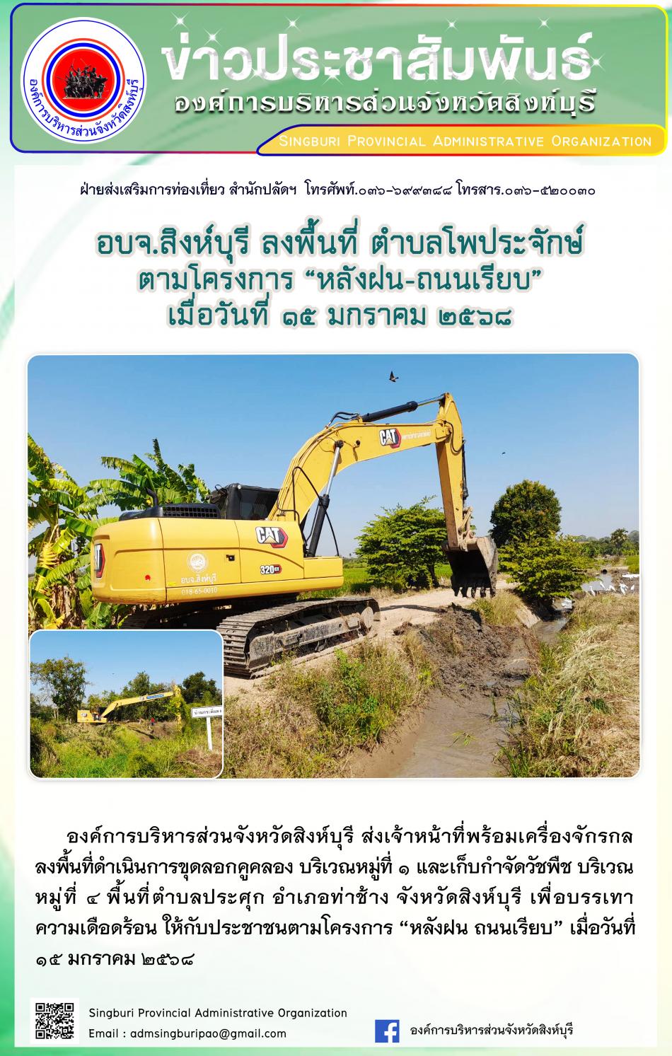อบจ.สิงห์บุรี ลงพื้นที่ ตำบลโพประจักษ์ ตามโครงการ "หลังฝน - ถนนเรียบ" [15 มกราคม 2568]