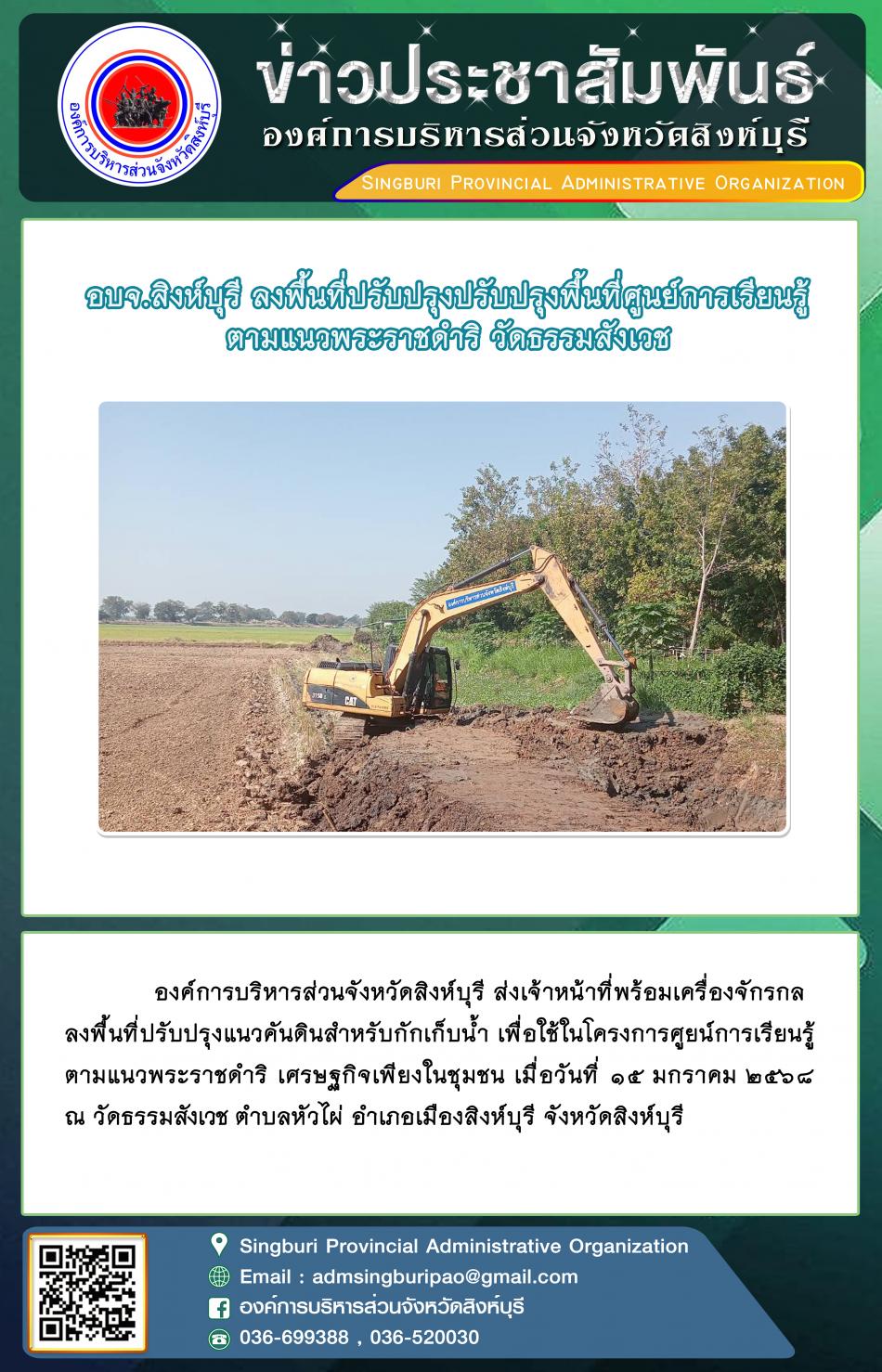อบจ.สิงห์บุรี ลงพื้นที่รับปรุงพื้นที่ศูนย์การเรียนรู้ ตามแนวพระราชดำริ วัดธรรมส่งเวช [15 มกราคม 2568]