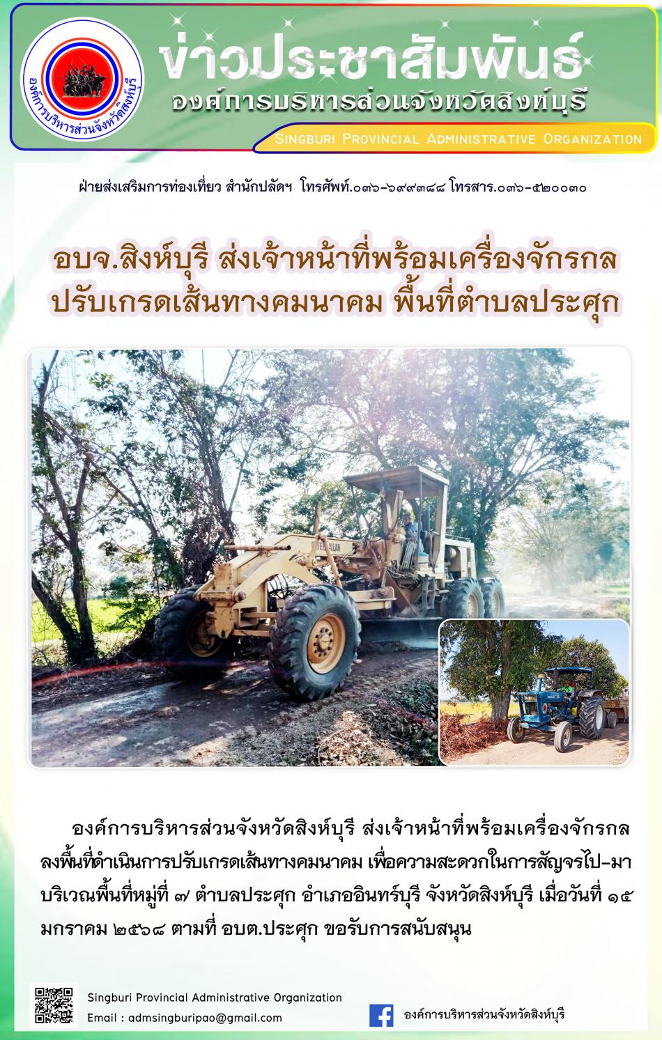 อบจ.สิงห์บุรี ส่งเจ้าหน้าที่ พร้อมเครื่องจักรกล ปรับเกรดเส้นทางคมนาคม พื้นที่ อบต.ประศุก [15 มกราคม 2568]