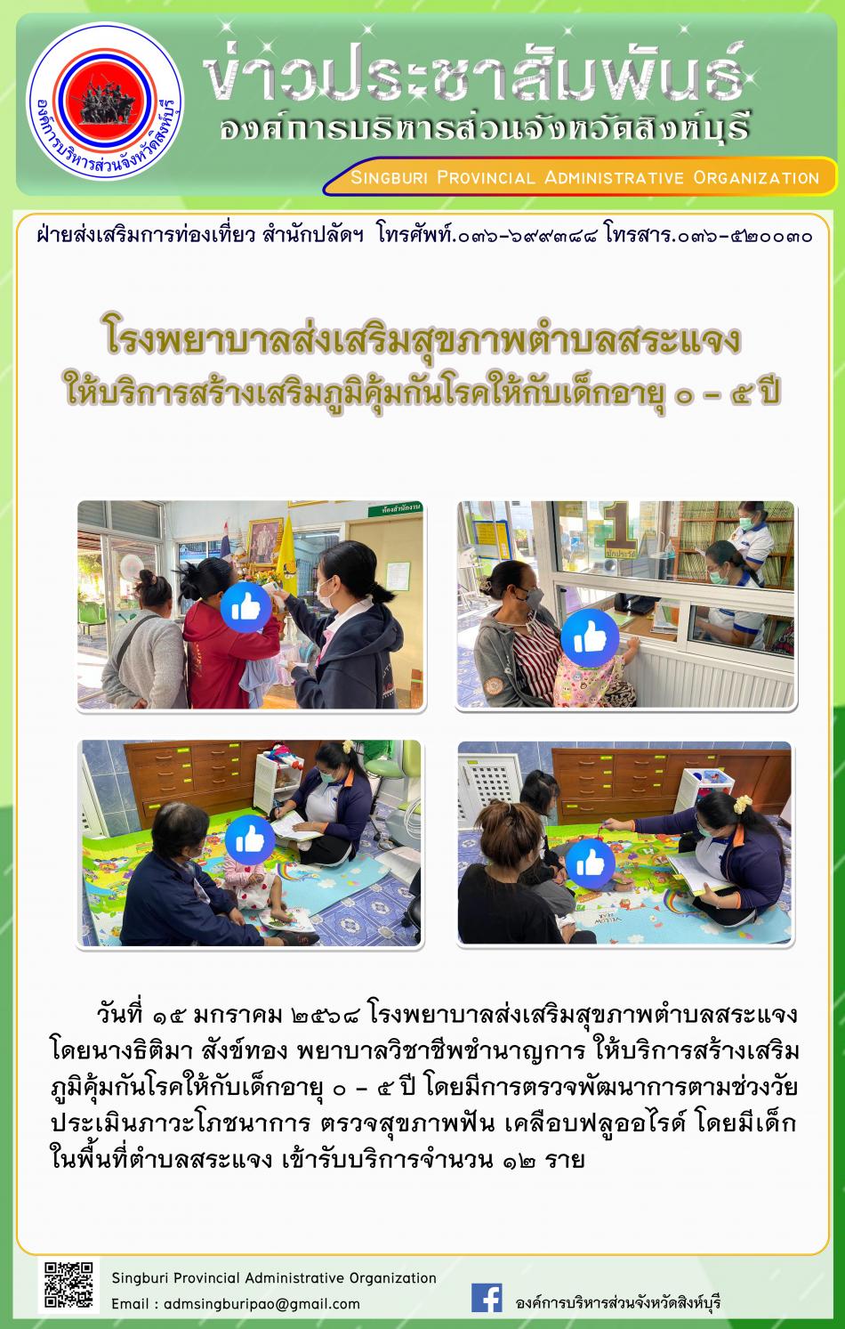 โรงพยาบาลส่งเสริมสุขภาพตำบลสระแจง ให้บริการสร้างเสริมภูมิคุ้มกันให้กับเด็กอายุ 0-5 ปี [15 มกราคม 2568]