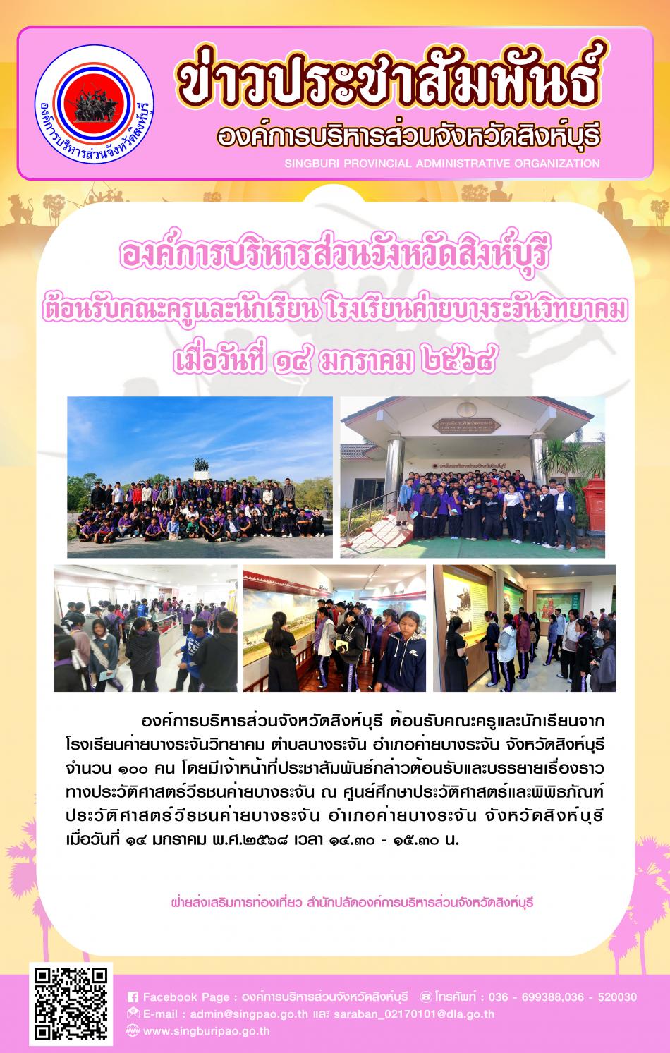 องค์การบริหารส่วนจังหวัดสิงห์บุรี ต้อนรับคณะครูและนักเรียน โรงเรียนค่ายบางระจันวิทยาคม [14 มกราคม 2568]