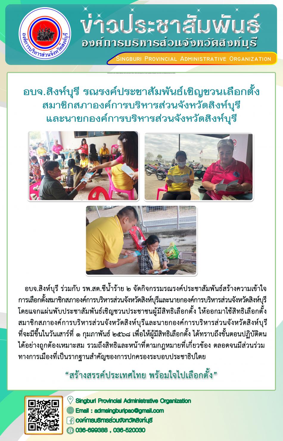 อบจ.สิงห์บุรี รณรงค์ประชาสัมพันธ์เชิญชวนเลือกตั้งสมาชิกสภาองค์การบริหารส่วนจังหวัดสิงห์บุรี และนายกองค์การบริหารส่วนจังหวัดสิงห์บุรี [13 มกราคม 2568]