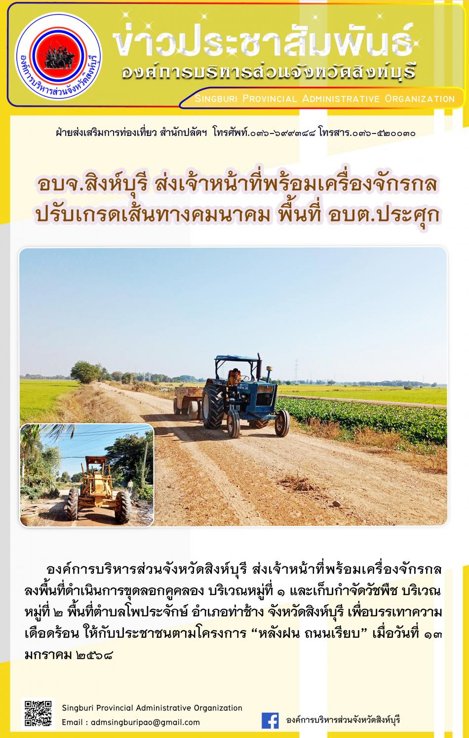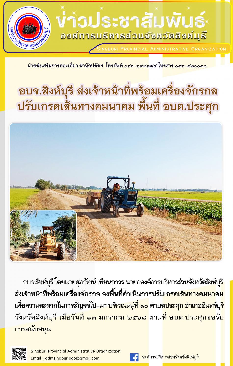 อบจ.สิงห์บุรี ส่งเจ้าหน้าที่ พร้อมเครื่องจักรกล ปรับเกรดเส้นทางคมนาคม พื้นที่ อบต.ประศุก [13 มกราคม 2568]