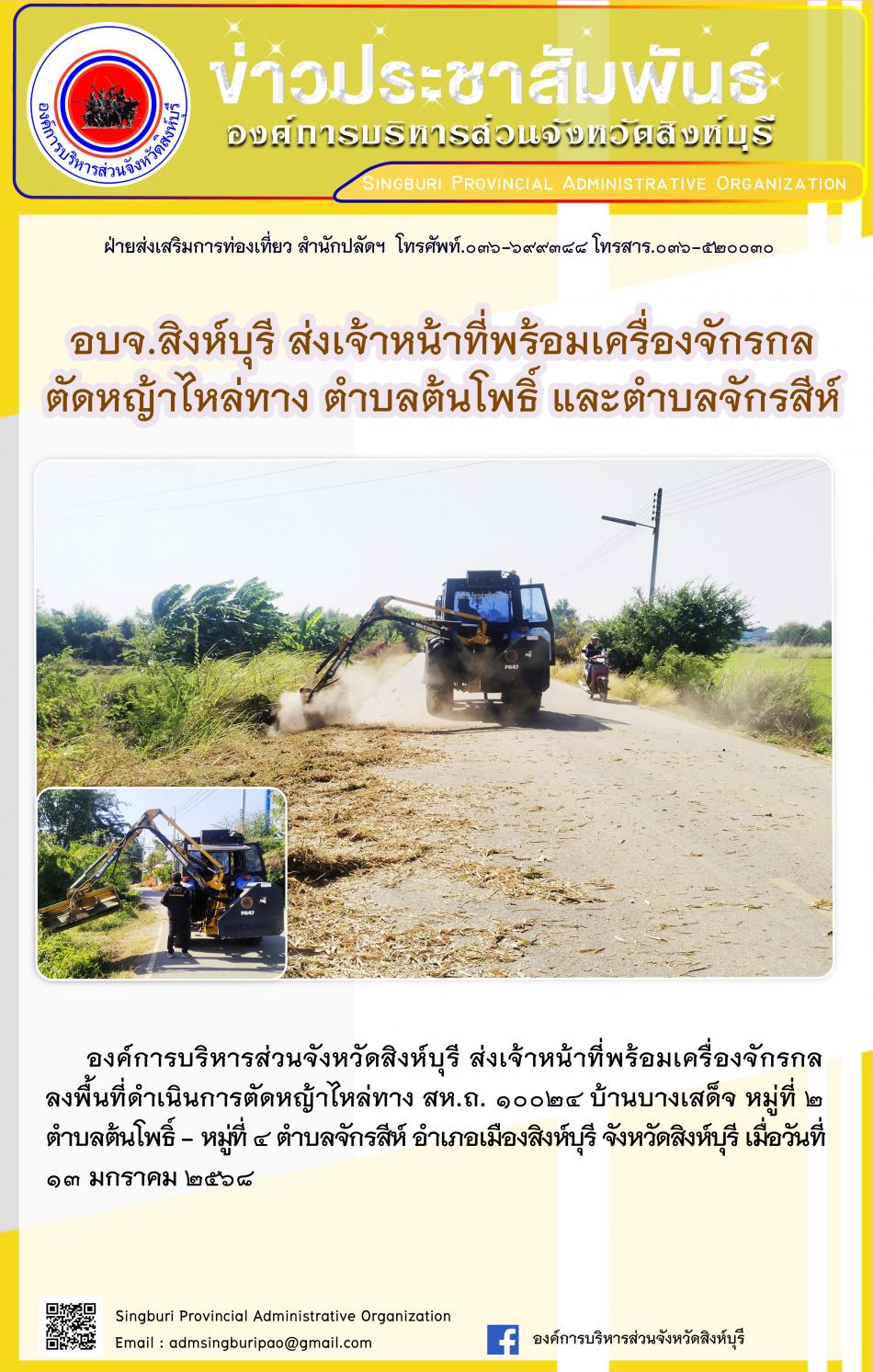 อบจ.สิงห์บุรี ส่งเจ้าหน้าที่ พร้อมเครื่องจักรกล ตัดหญ้าไหล่ทาง ตำบลต้นโพธิ์ และตำบลจักรสีห์ [13 มกราคม 2568]