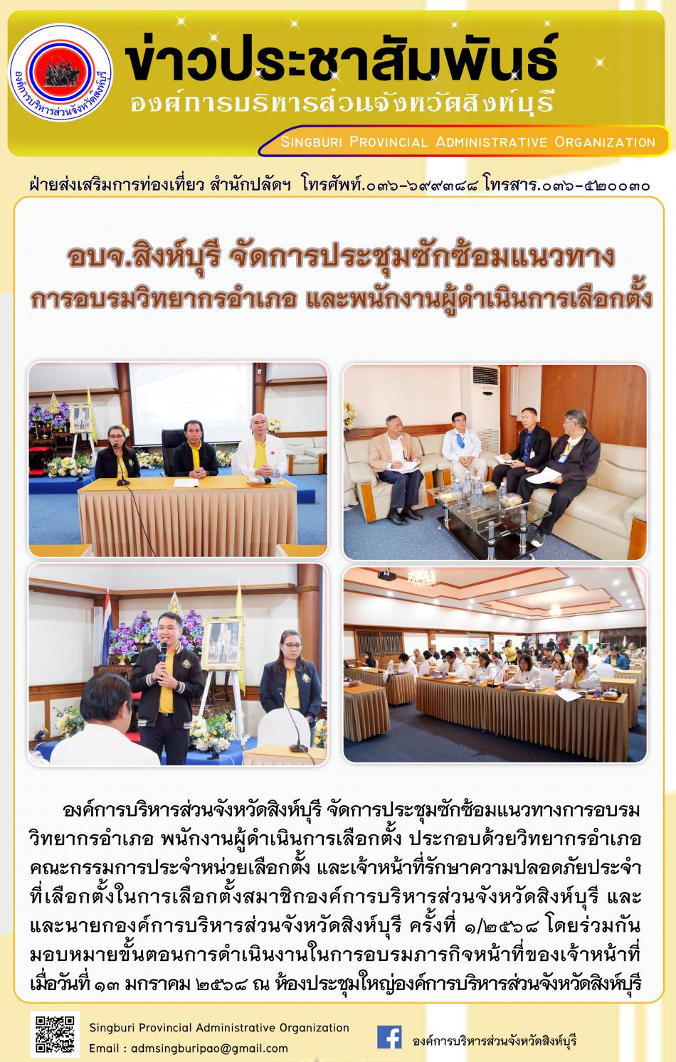 อบจ.สิงห์บุรี จัดการประชุมซักซ้อมแนวทางการอบรมวิทยากรอำเภอ และพนักงานผู้ดำเนินการเลือกตั้ง [13 มกราคม 2568]