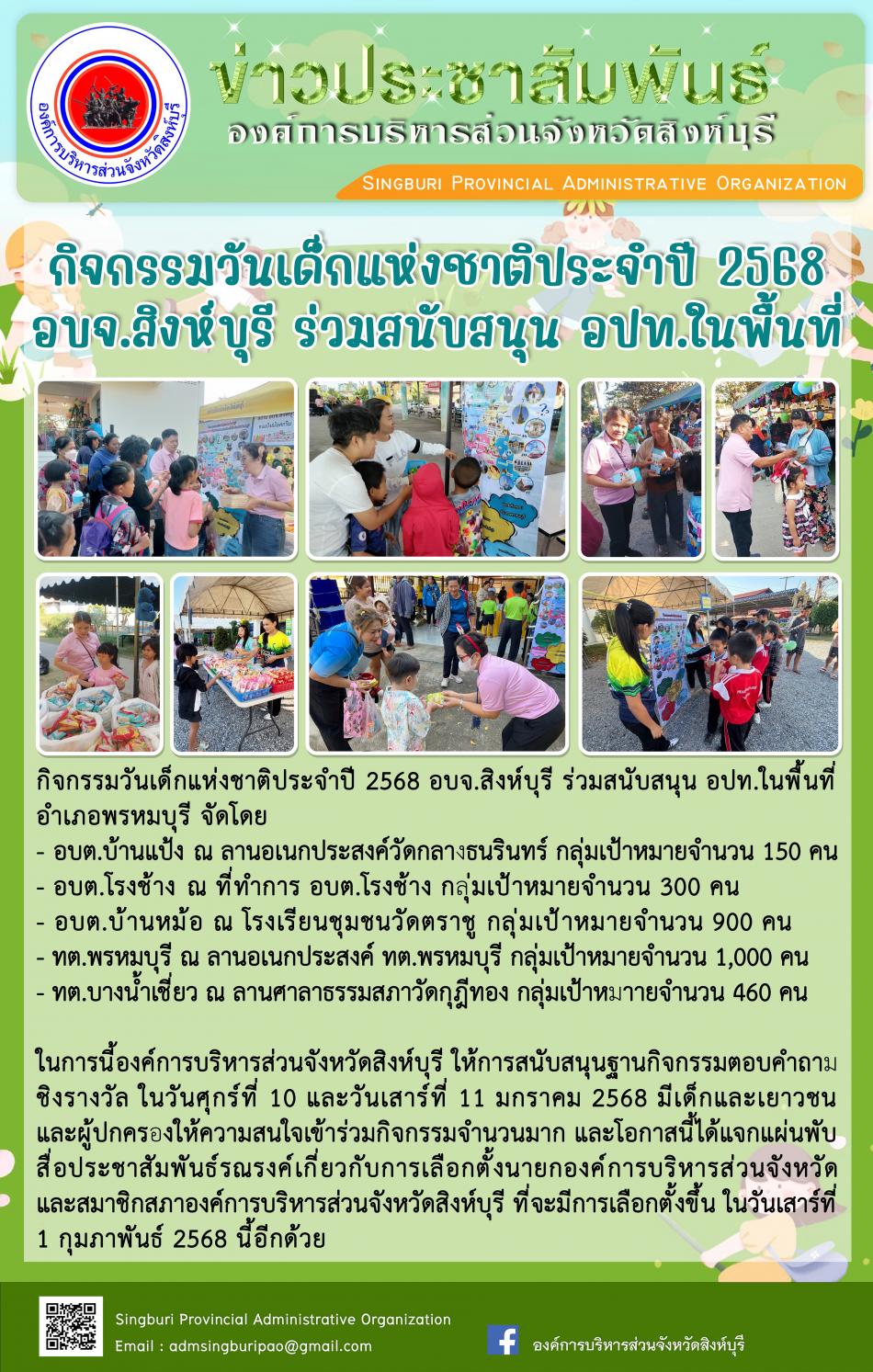 กิจกรรมวันเด็กแห่งชาติประจำปี 2568 อบจ.สิงห์บุรี ร่วมสนับสนุน อปท.ในพื้นที่ [10 มกราคม 2568]