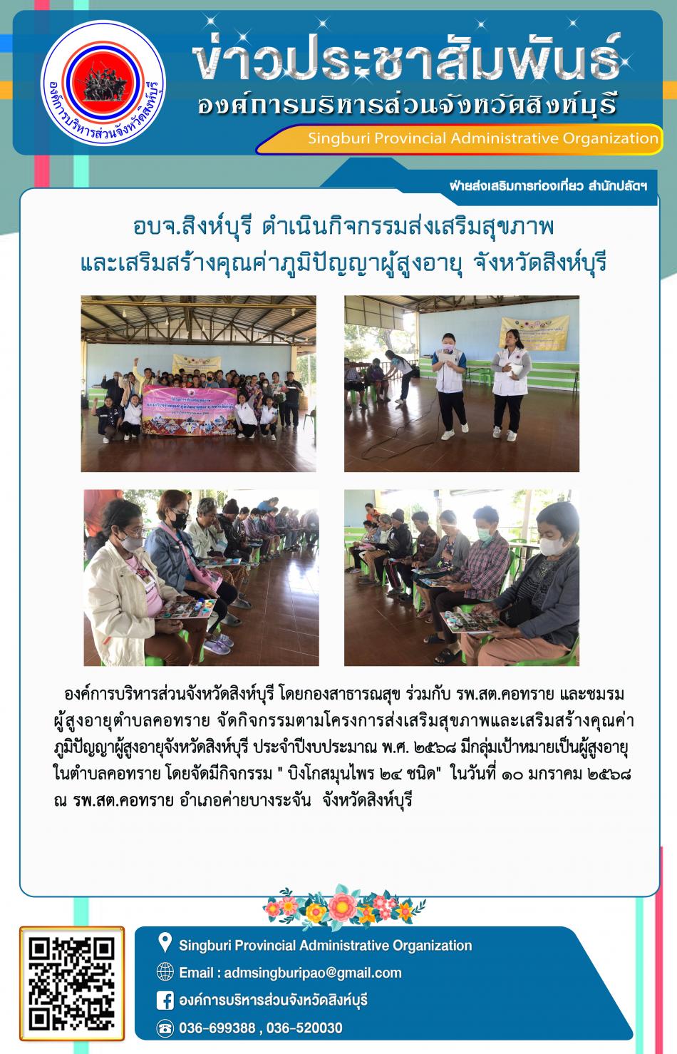 อบจ.สิงห์บุรี ดำเนินกิจกรรมส่งเสริมสุขภาพ สร้างจิตใจที่แจ่มใสให้กับผู้สุงอายุ จังหวัดสิงห์บุรี [10 มกราคม 2568]