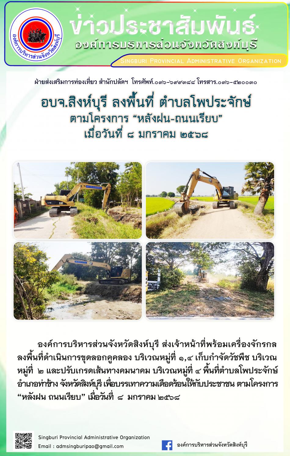 อบจ.สิงห์บุรี ลงพื้นที่ ตำบลโพประจักษ์ ตามโครงการ "หลังฝน - ถนนเรียบ" [8 มกราคม 2568]